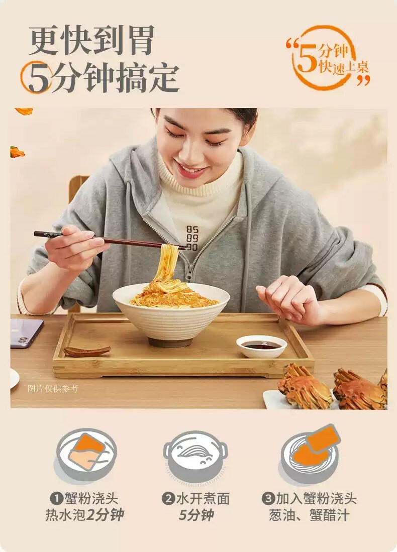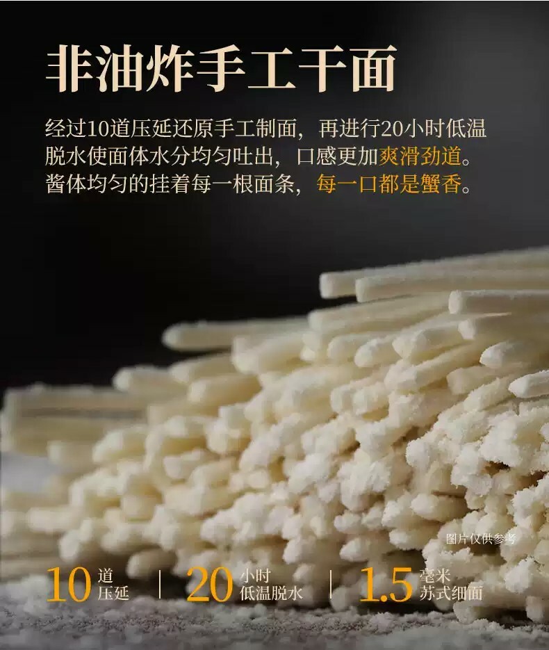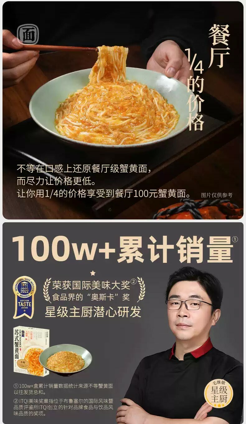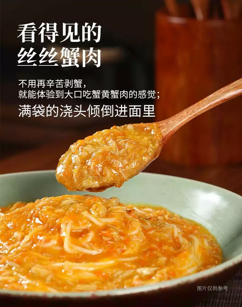 新品上綫!想食蟹黃面?宜家唔洗出街就可以在家享受由星級主厨研發的蟹黃面!蟹黃面 榮獲國際美味大獎!喺食品界的"奧斯卡"獎~ 原材料選用2兩以上鮮活大閘蟹~0蛋黃! 0死蟹!0防腐劑! 0香精! 真材實料看得見~